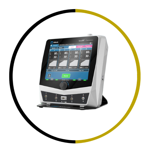 El generador IonicRF™, en combinación con los electrodos y cánulas compatibles y aprobados, está concebido para lesiones en tejidos neurales del sistema nervioso como ayuda para el alivio del dolor.